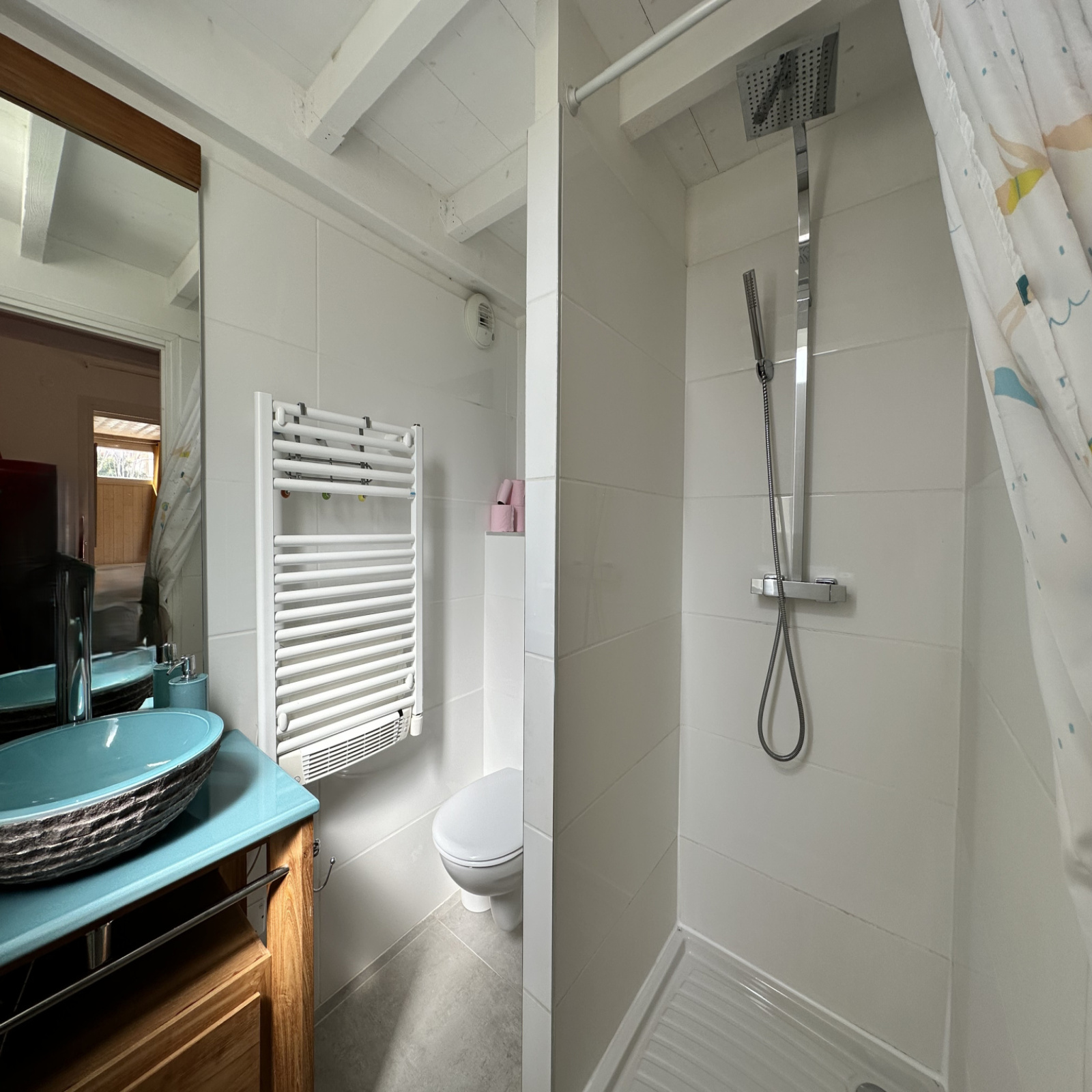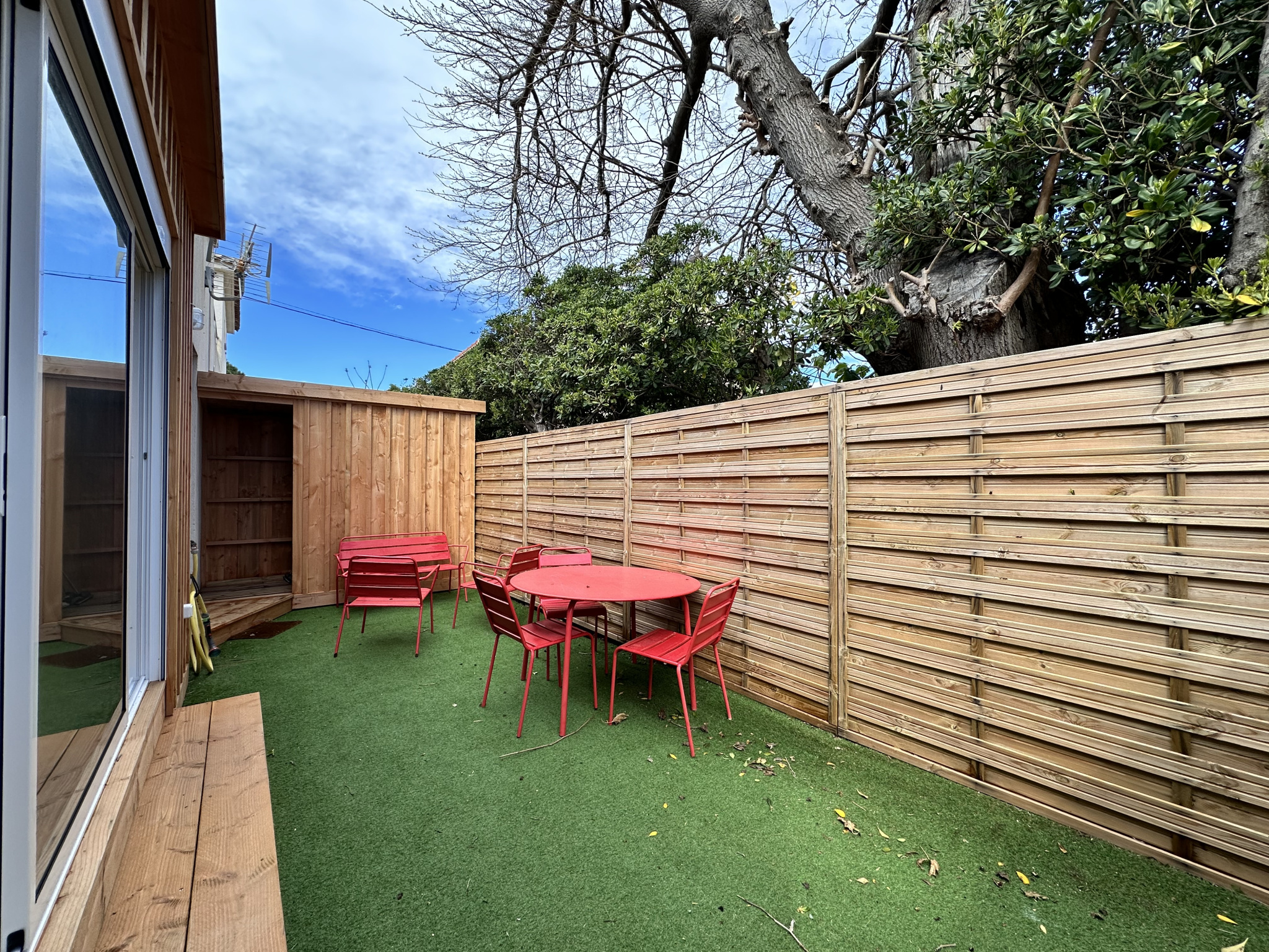 À l’extérieur, vous profiterez d’un agréable espace privatif d’environ 22 m², idéal pour les beaux jours, complété par un cabanon de rangement.