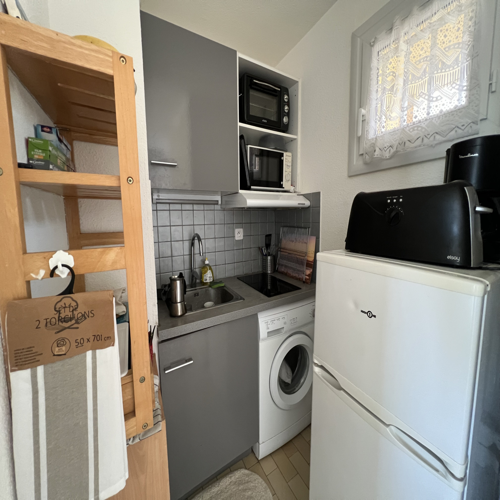 A LOUER, Appartement type studio meublé de 19 m2 situé dans une résidence sécurisée, proche de toutes commodités. Il se compose comme suit : une pièce à vivre climatisée donnant sur une terrasse avec vue dégagée, une cuisine meublée et équipée, un coin nuit et une salle d'eau avec WC.