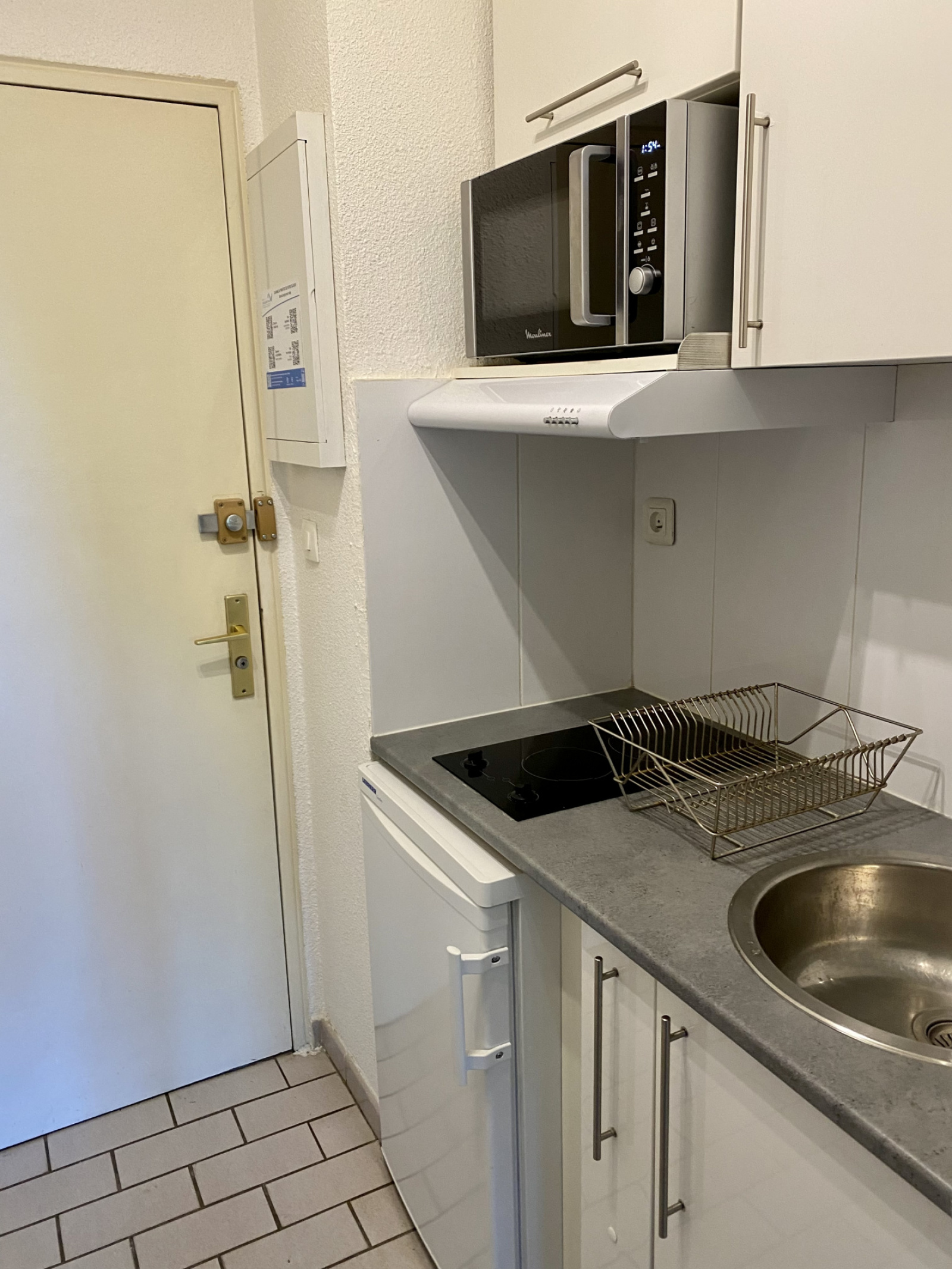 Cet appartement se compose d'une entrée avec son coin cuisine, une agréable pièce de vie s'ouvrant sur balcon, une salle d'eau avec wc et son coin buanderie.