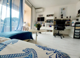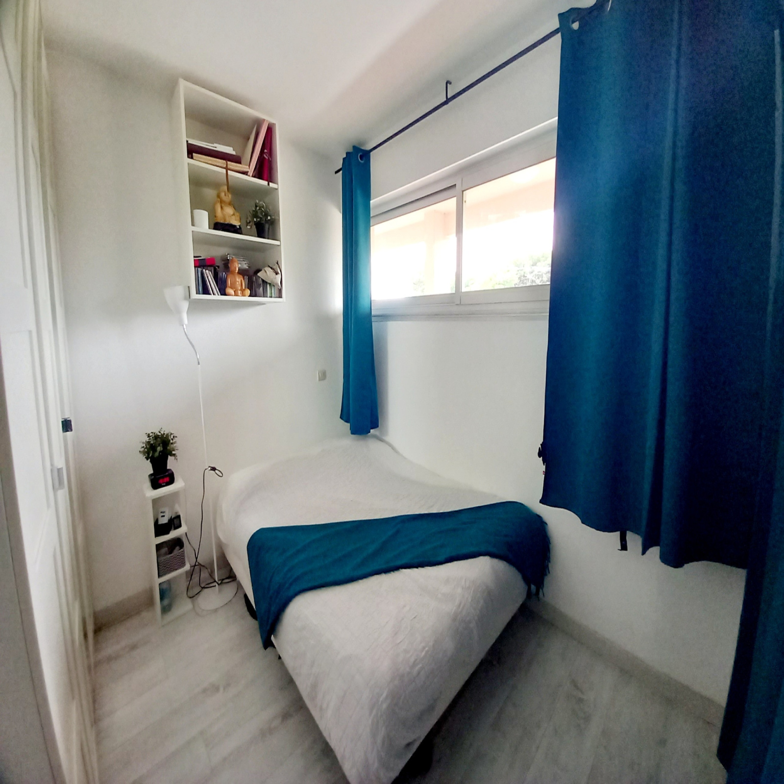 Ce bien se compose d'une entrée desservant la pièce de vie climatisée qui profite d'un agréable balcon couvert offrant une vue dégagée sur la piscine, une cuisine séparée, une chambre avec rangement, une salle de bains et un wc indépendant.