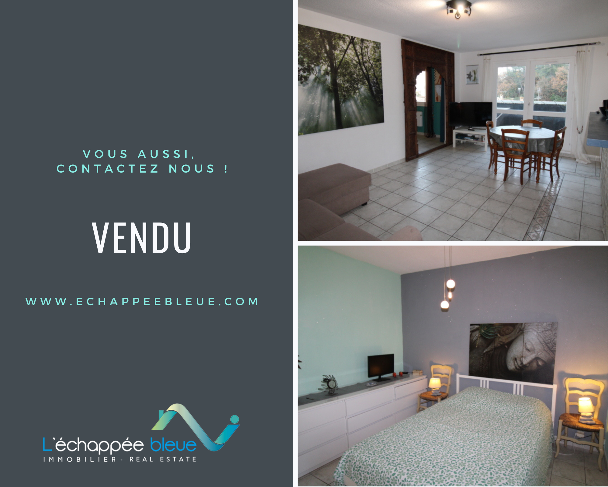 Séjour, cuisine équipée avec ouverture sur le balcon. 3 chambres, 1 salle d'eau, 1 wc séparé, un cellier et un dressing dans l'entrée. 2 places de parking dont une fermée.