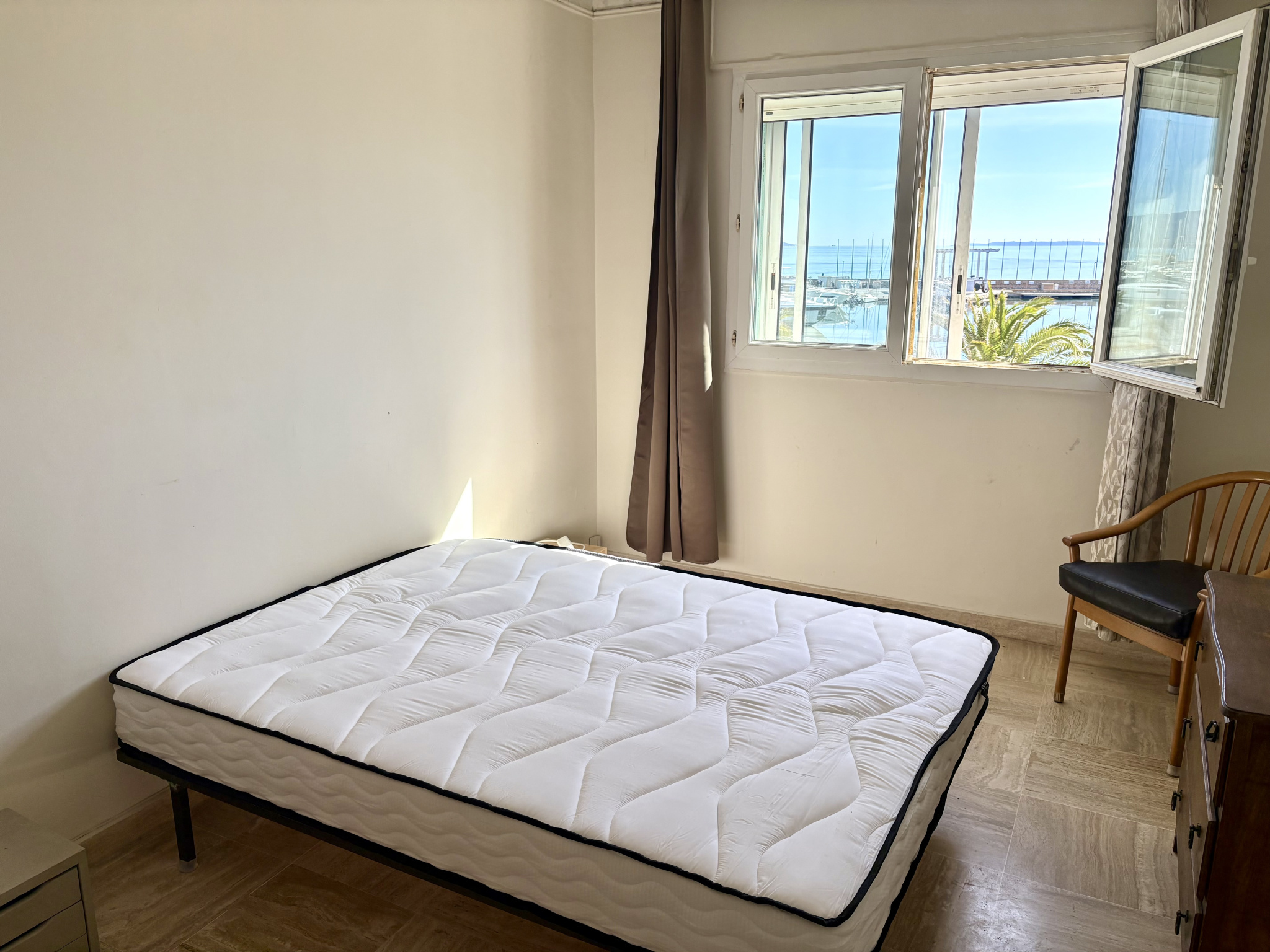 L’appartement se compose d’une entrée avec placard, d’une agréable pièce de vie climatisée ouvrant sur un balcon où vous pourrez profiter pleinement de la magnifique vue sur la mer et le port. La cuisine séparée, fonctionnelle, s’ouvre également sur le balcon, offrant ainsi un espace convivial et lumineux. Un dégagement dessert une chambre confortable, une salle de bains et un WC indépendant avec lave-mains.