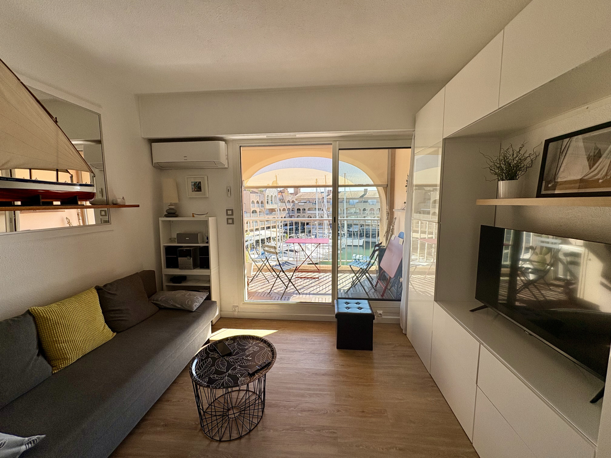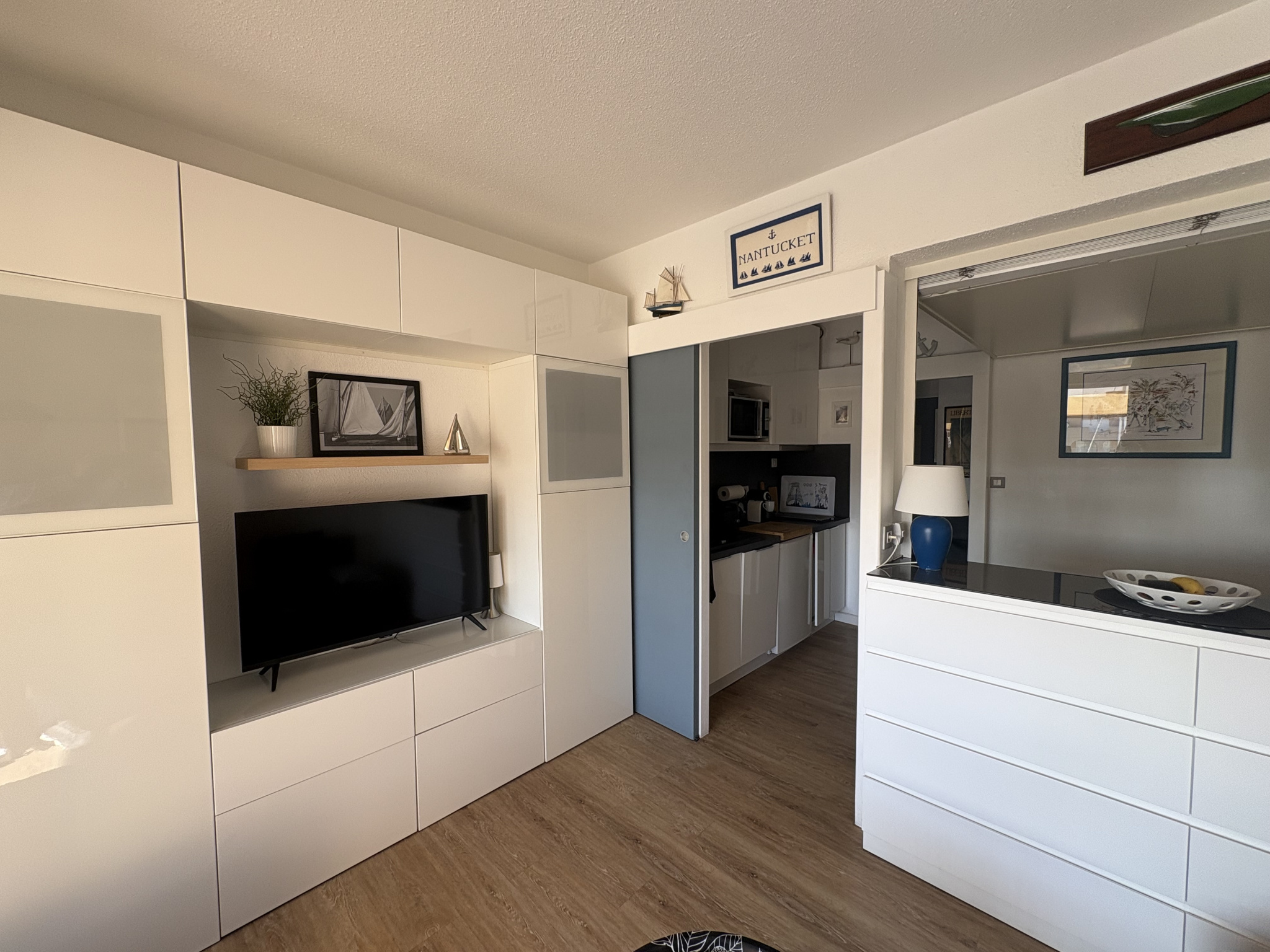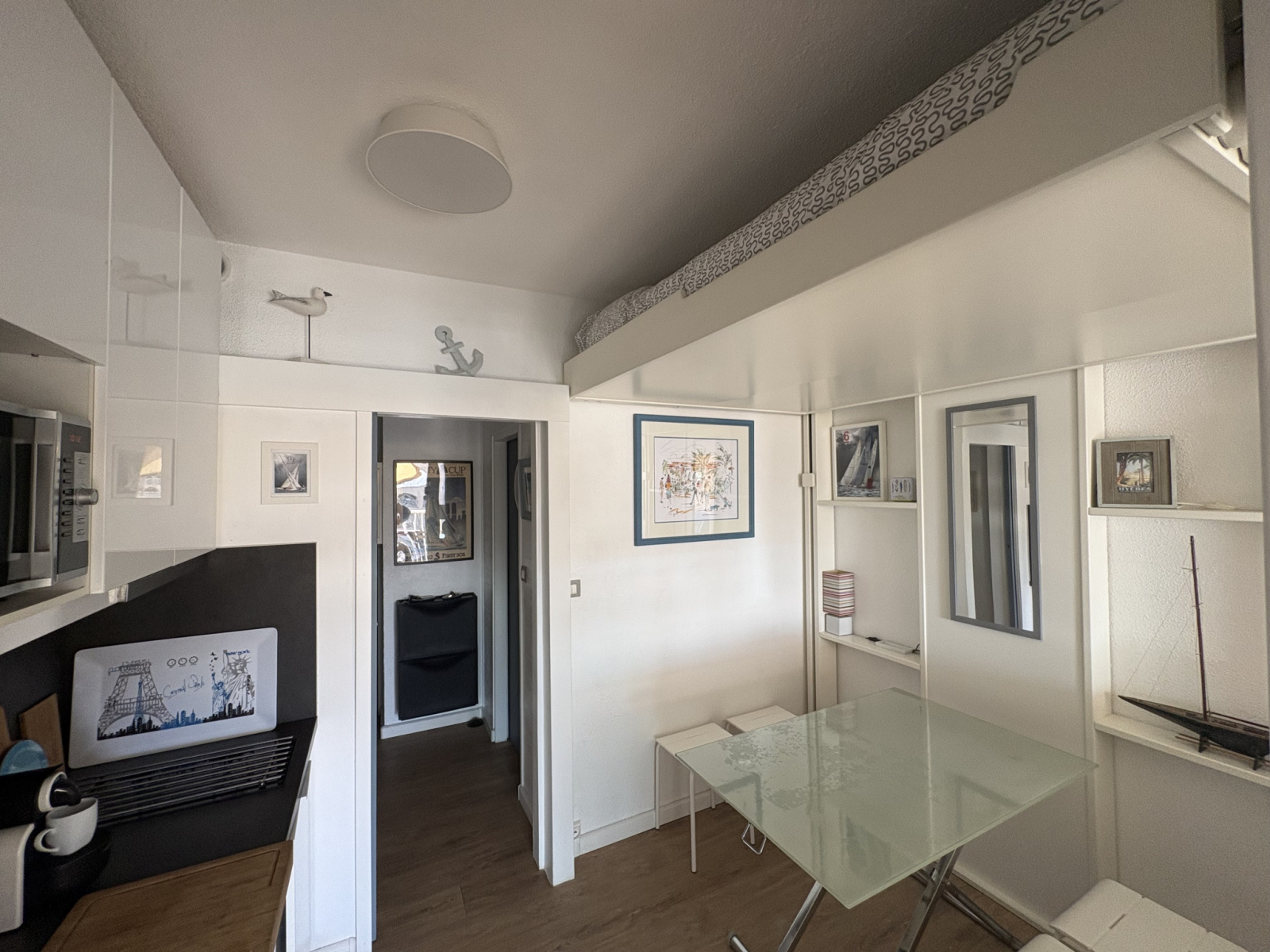 Idéal en résidence secondaire, pied-à-terre ou pour de la location saisonnière, ce bien se compose d’une entrée avec placard, d’un espace cuisine fonctionnel et parfaitement équipé, ainsi que d’un espace salle à manger convivial. Vous apprécierez le lit escamotable, offrant un véritable couchage confortable pour la nuit, et l’espace salon climatisé qui s’ouvre sur un beau balcon. Profitez d’une sublime vue dégagée sur le port et la mer, un cadre unique pour vos moments de détente.