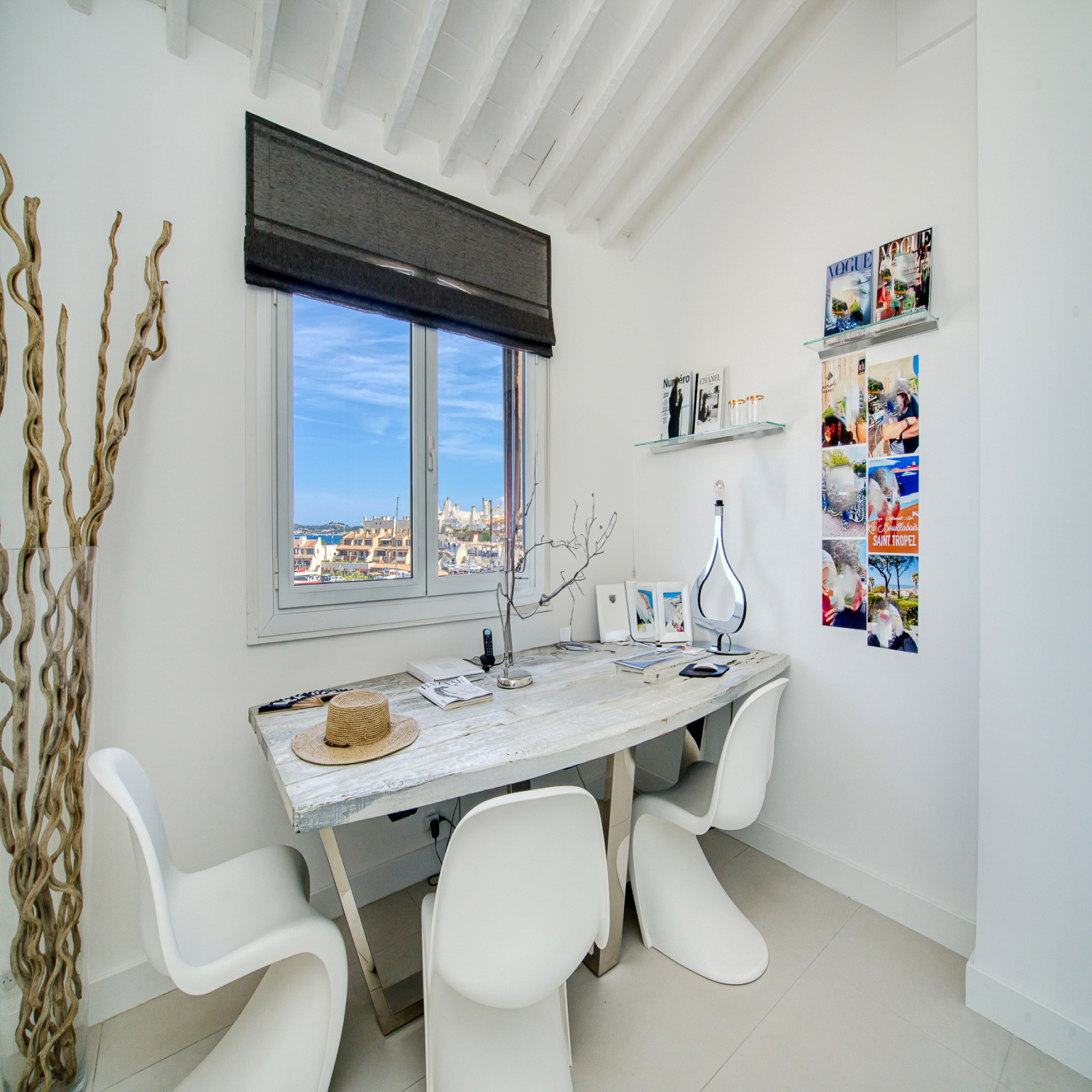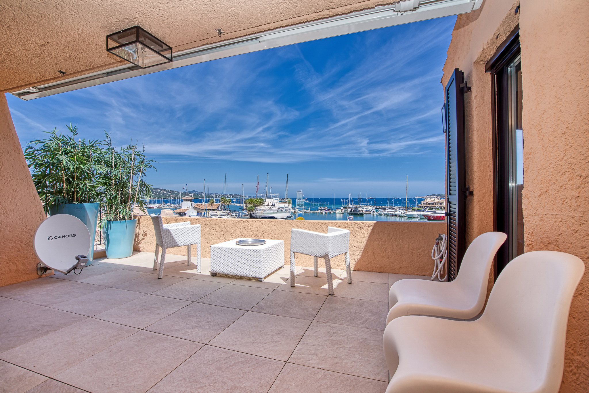 Vous serez charmés par cet appartement entièrement climatisé, très lumineux de par son exposition et vous proposant une superbe vue sur tout le Golfe de Saint-Tropez et la Marina.