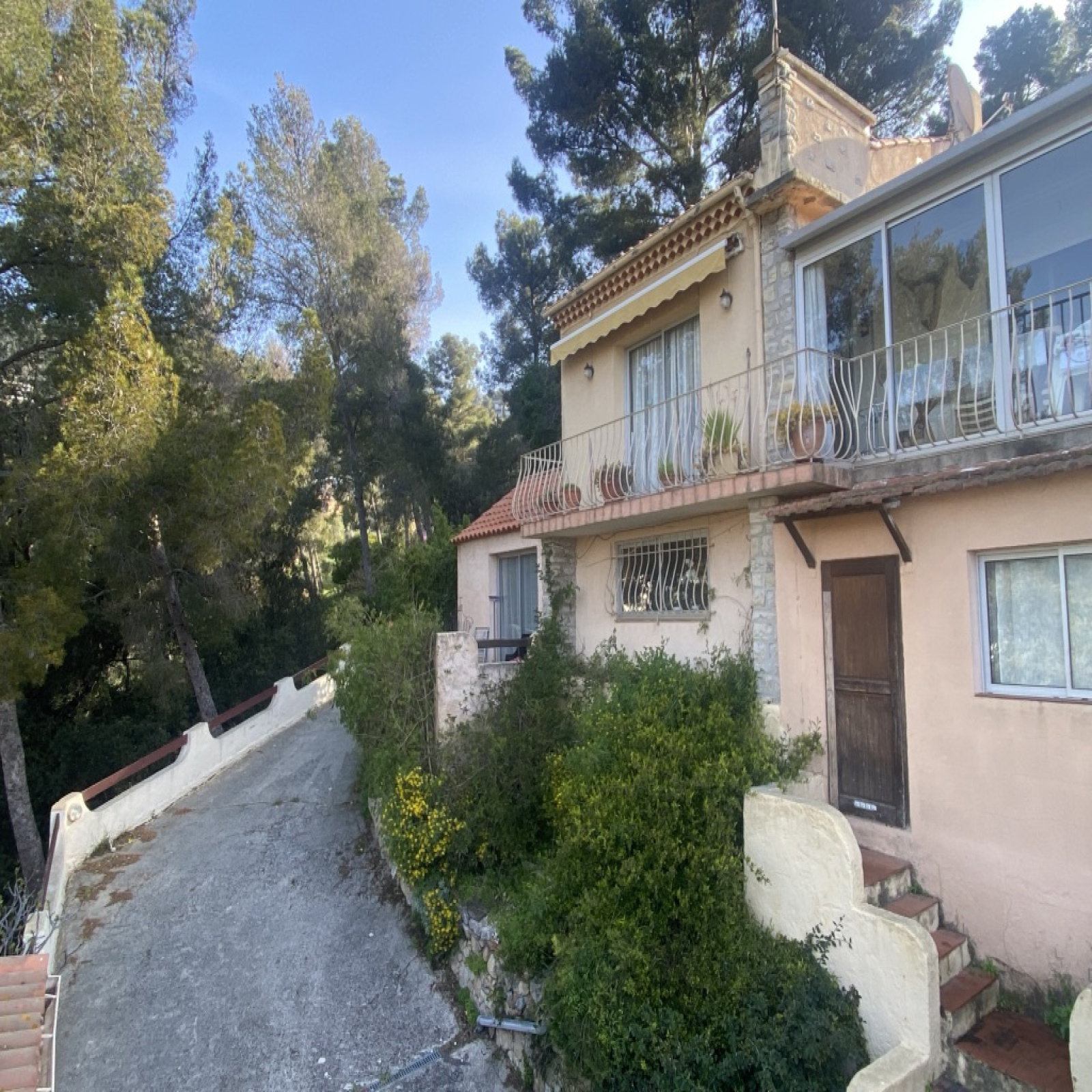 La villa exposée Sud/ouest est située dans un environnement calme et bénéficie d’une belle nature environnante. avec vue mer.
