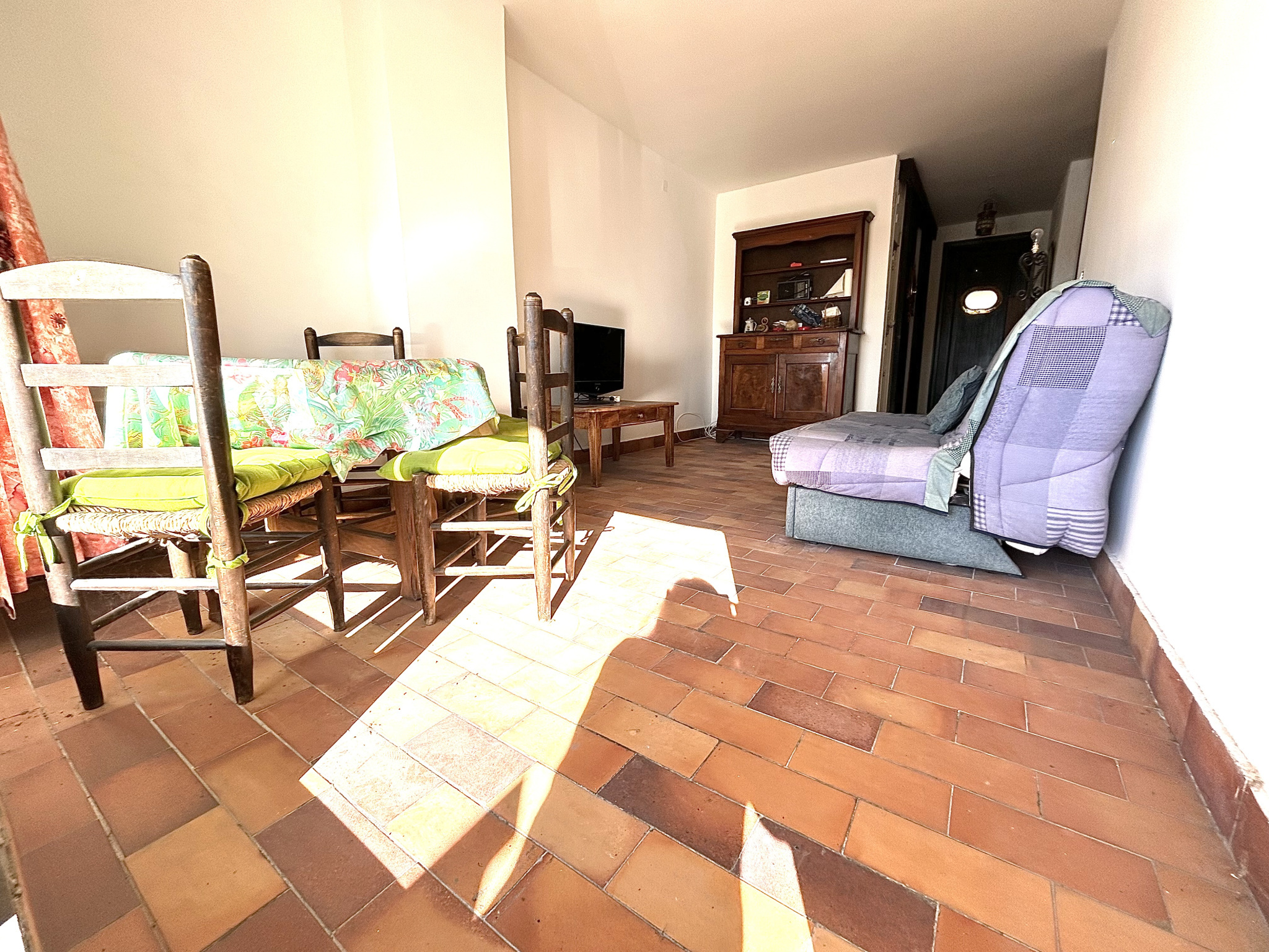 Il est composé d'une pièce de vie d'environ m² avec un accès sur la terrasse, une cuisine séparée, une grande chambre donnant également sur la terrasse, une salle de bain et un wc séparé. Cellier.