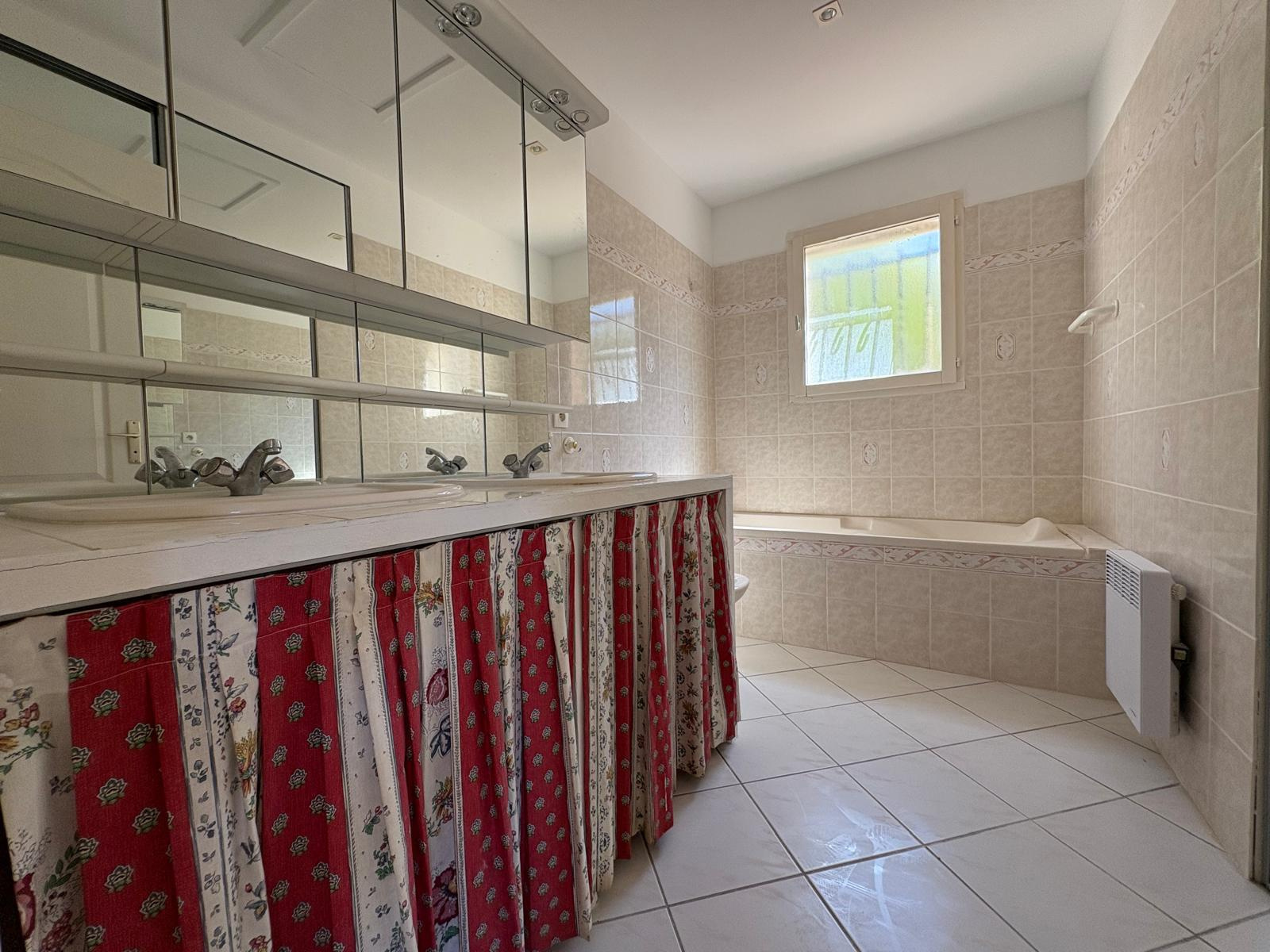 Vous serez résolument charmés par cette jolie maison des années 1990, de plain pied, exposée plein Sud, vous proposant de très beaux volumes intérieurs au sein d'un environnement extèrieur particulièrement protégé.