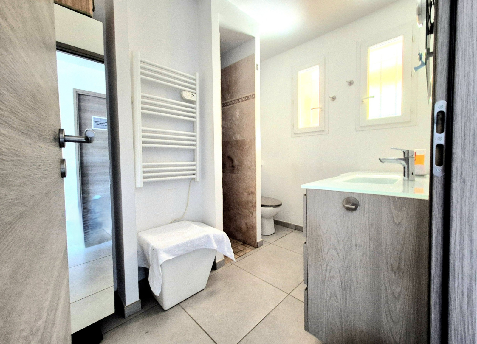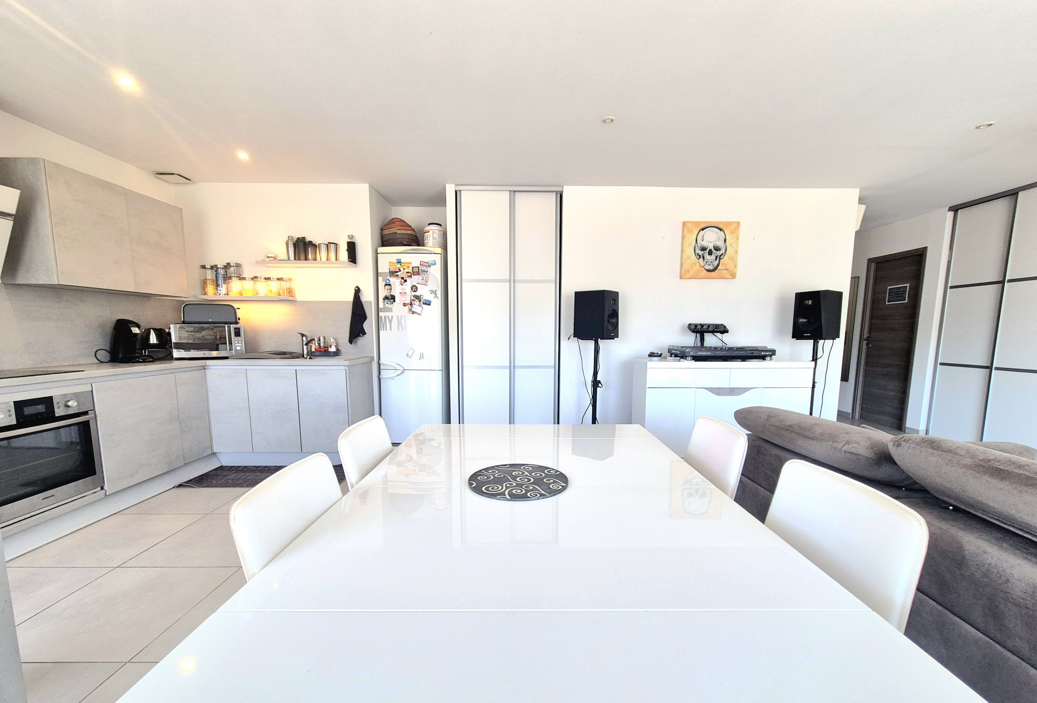 L'appartement T3, très lumineux grâce à son exposition Sud, est d'une superficie d'environ 83 m2 . Il comprend une grande entrée avec rangements, une agréable pièce à vivre climatisée d'environ 41m2 avec une belle cuisine ouverte et équipée, un poele à granulés, un cellier, de nombreux espaces de rangements. Côté nuit il se compose de 2 chambres de 12,37 m² et 10,55 m² avec rangements et 1 salle d'eau avec douche à l'italienne et WC.