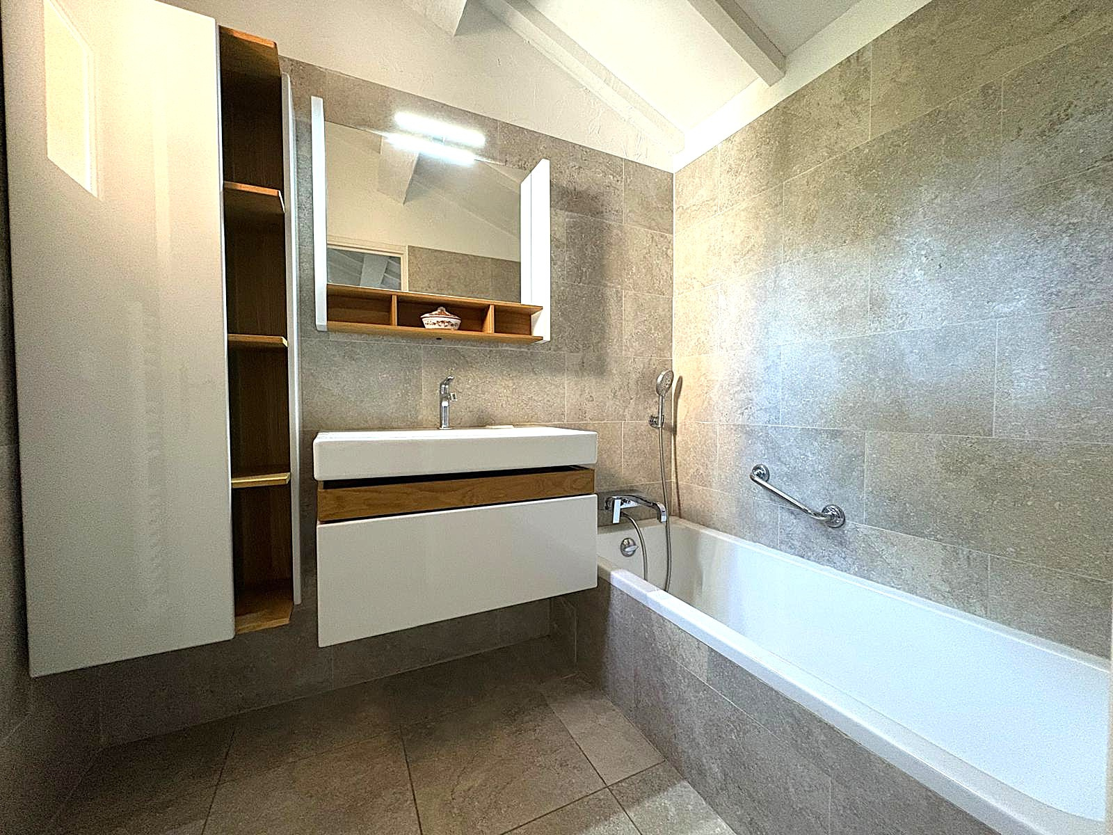 A l'étage : une seconde chambre avec une terrasse exposée Ouest, une salle de bain et un wc.