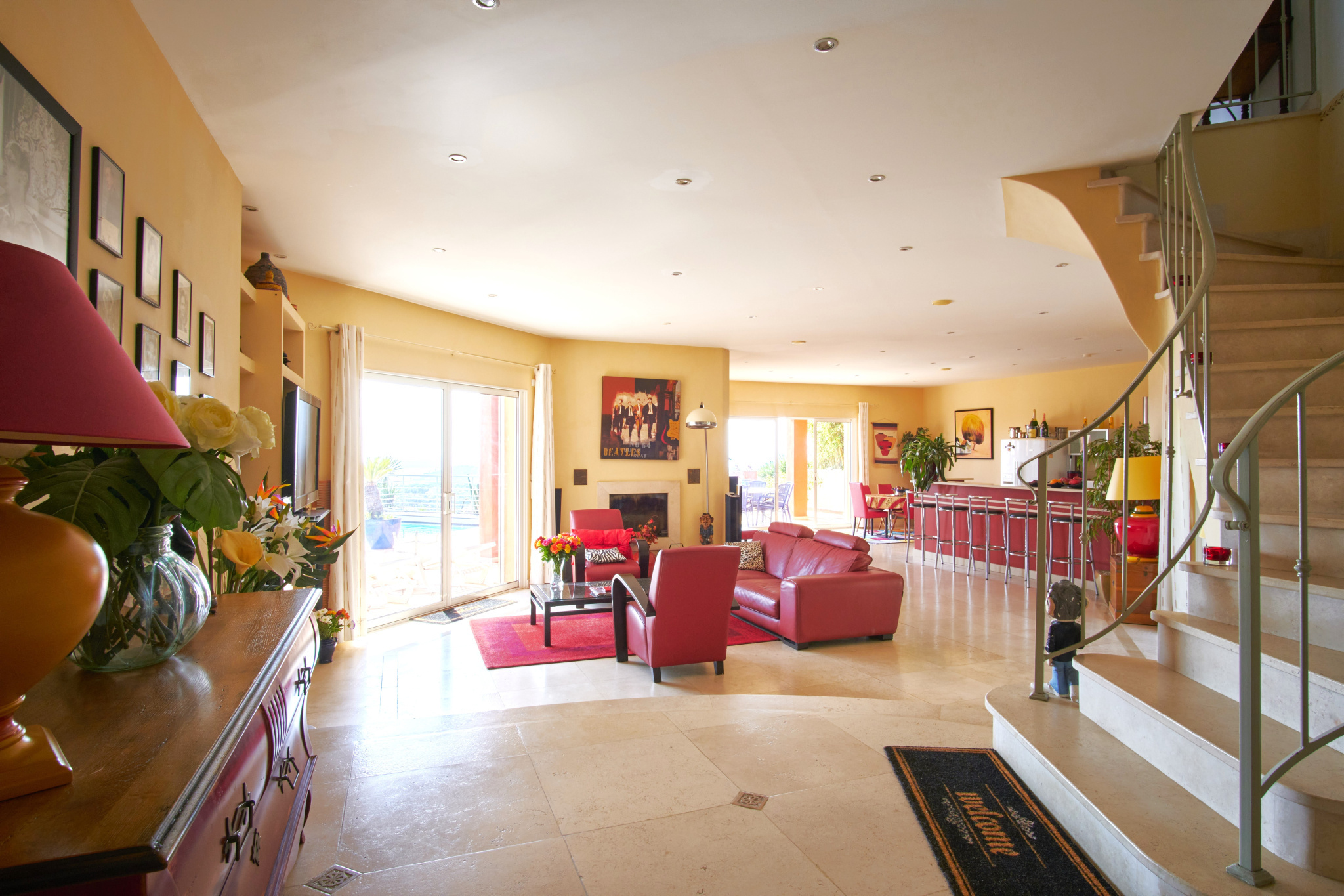 En rez de chaussée, vous trouverez une double réception d'environ 90 m² avec cuisine ouverte aménagée et équipée, un toilette invité et dans la partie nuit deux grandes chambres donnant accès sur des terrasses, une salle de bain et un dressing. A l'étage, deux grandes chambres avec terrasses et salles d'eau privatives et un wc. Le tout entouré de grandes terrasses couvertes et découvertes et une piscine à débordement de 11,5mx5m avec pool house.