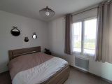 Cette maison se compose en rez de jardin d'un entrée avec placard, d'un salon séjour avec cuisine ouverte, poele à granulé et climatisation réversible, un wc et un placard complètent ce niveau.