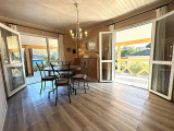 Il est composé d'une lumineuse pièce de vie traversante avec cuisine ouverte donnant accès à deux grandes terrasses exposées Sud-Est-Ouest, deux chambres avec placards, une salle d'eau et un wc. Cellier. Possibilié de faire une autre chambre.