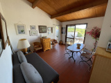 À l’intérieur, Un séjour lumineux avec accès direct à la terrasse, une cuisine semi-ouverte, deux chambres confortables, une salle de bain avec WC. Le tout dans un environnement calme et privilégié,