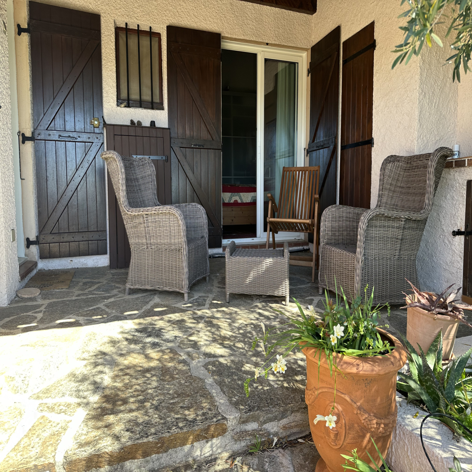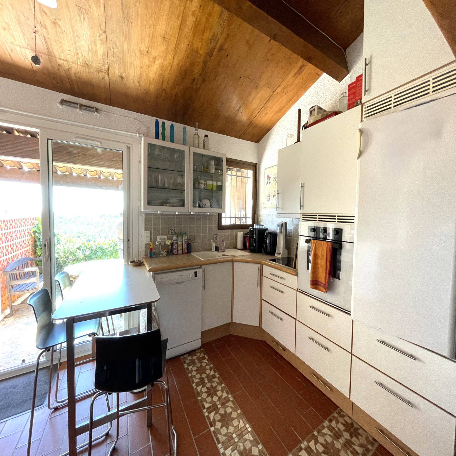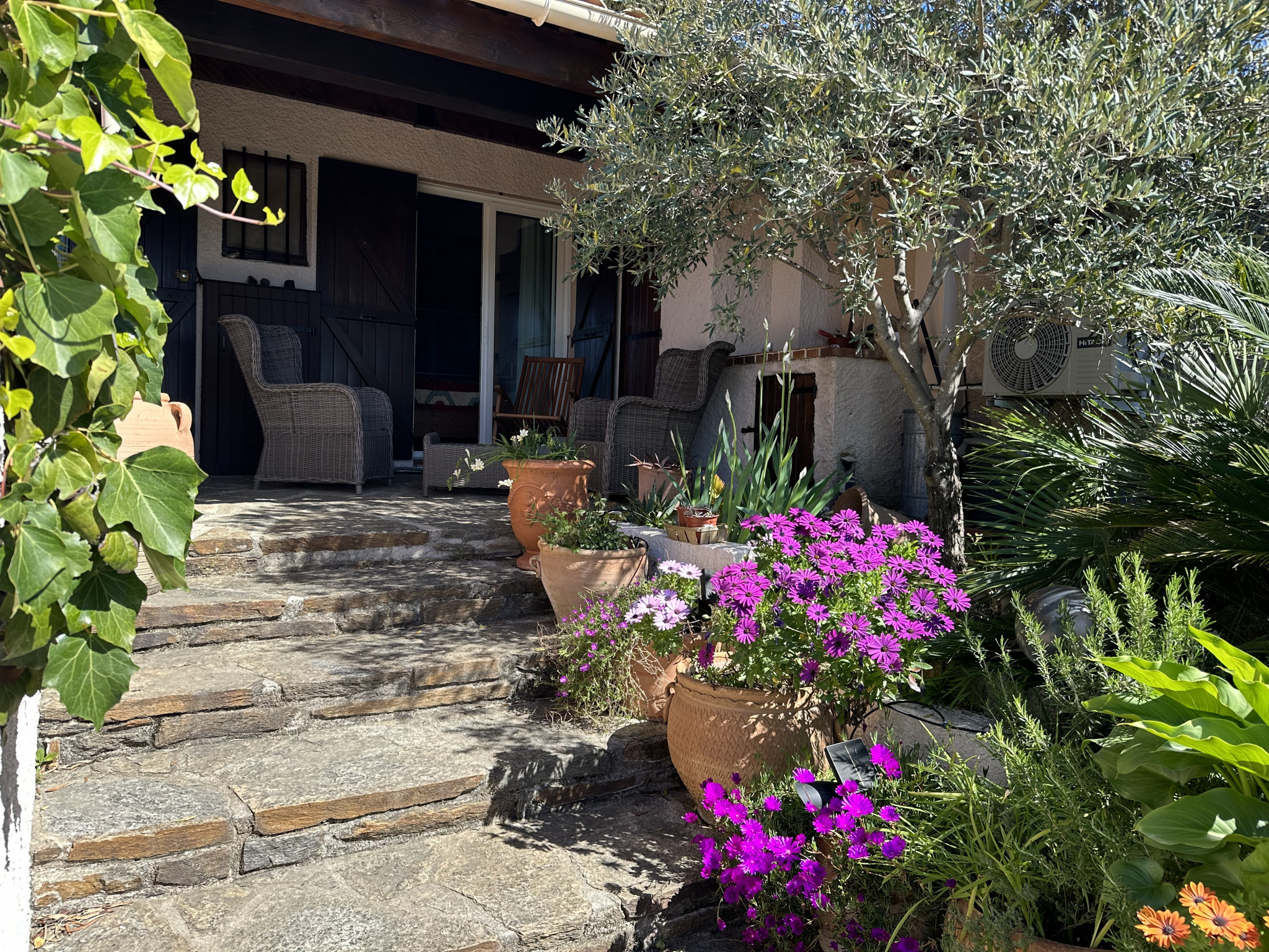 Accessible par une ruelle piétonne et quelques marches ; bordée de végétation, cette maison exposée plein sud invite immédiatement à la détente. Son véritable atout ? Une magnifique terrasse ombragée d’environ 30 m², pensée comme une pièce à vivre supplémentaire, avec cuisine d’été intégrée — parfaite pour prolonger les soirées en extérieur, entre ombre et lumière.