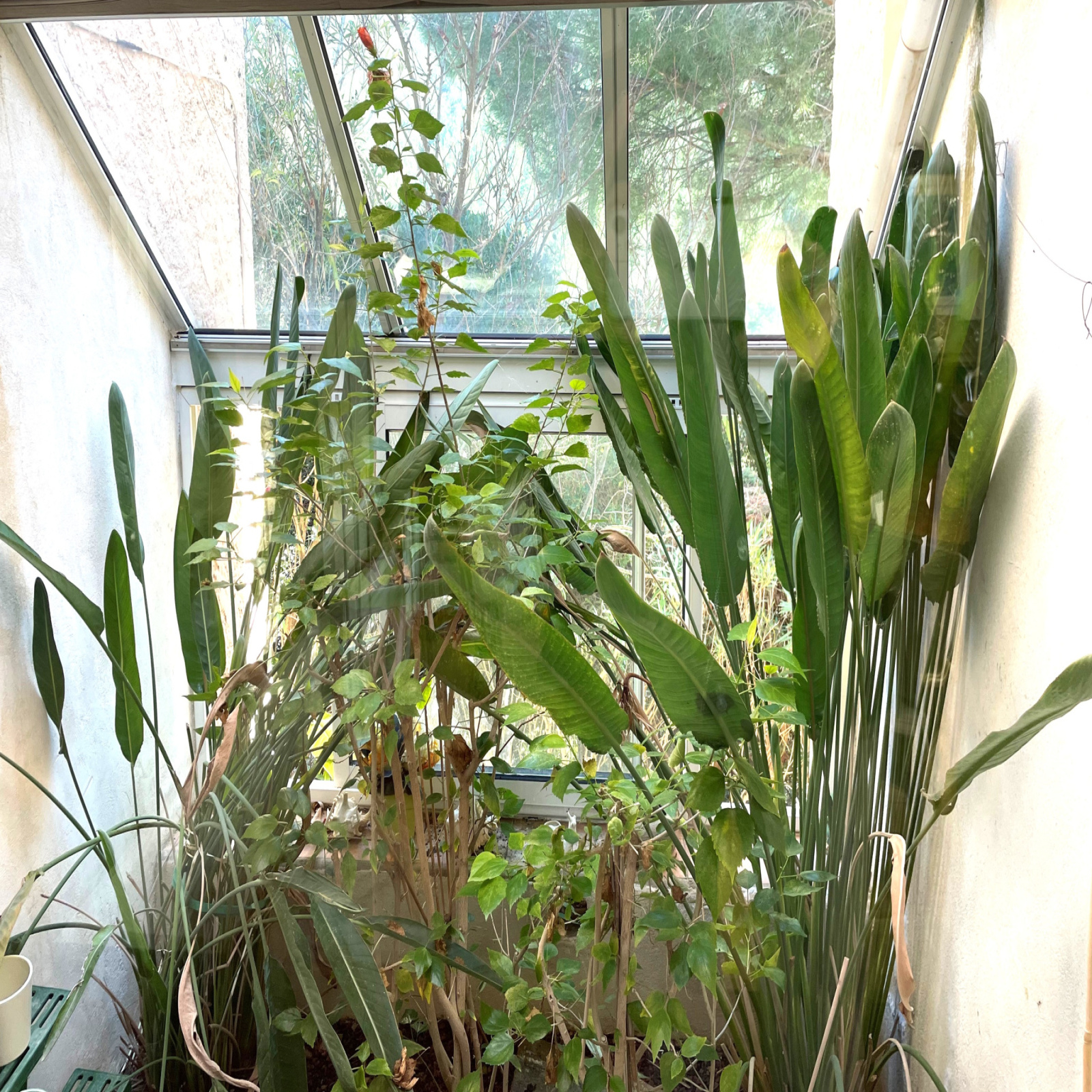 Toujours au rez-de-chaussée, deux chambres, une salle de bain, un puits de lumière dans une serre qui attrape le soleil comme un chat attrape les mouches, et une buanderie