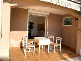 La cuisine, elle, a gardé ses allures anciennes et donne sur une terrasse couverte :