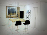 En bas, un autre séjour/cuisine, qui donne sur le jardin, une grande chambre de 23 m², une cabine pour les petits de passage, une salle d’eau et même une cave pour le vin.