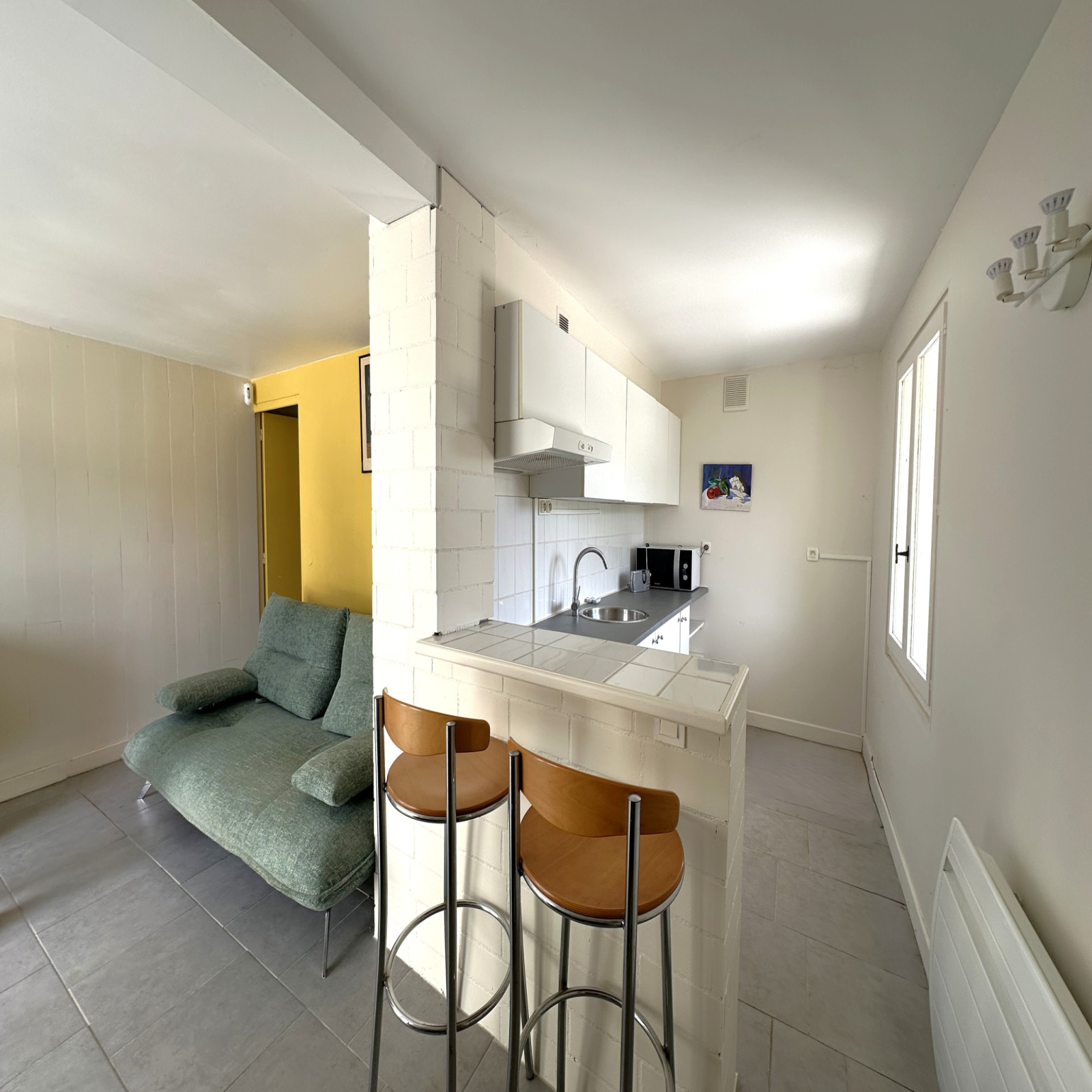 36 m² comprend une chambre, salle d’eau, WC et la pièce de vie avec cuisine, donnant directement sur la terrasse. Une cave
