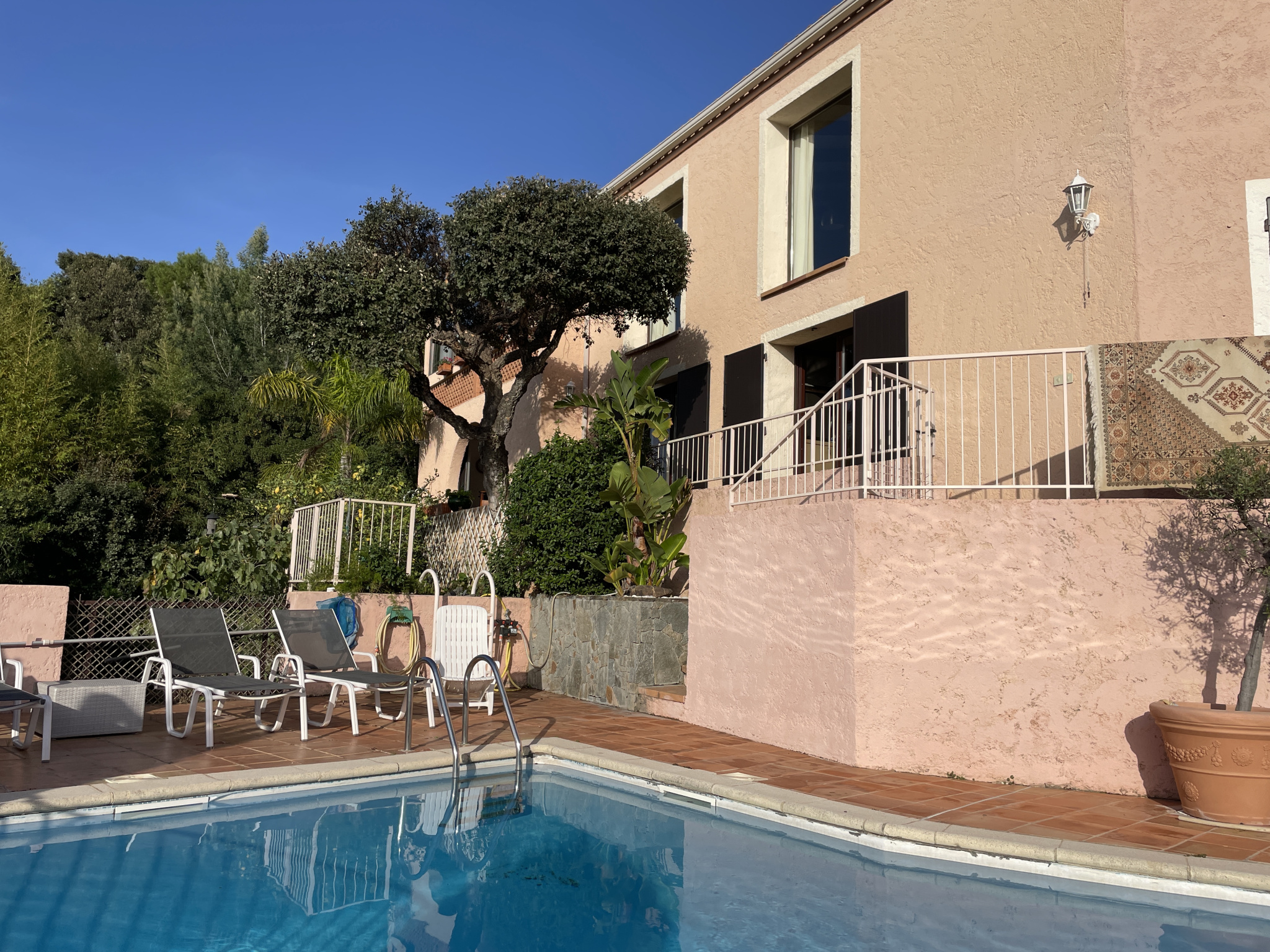 Cette propriété, élégante et lumineuse, offre un cadre de vie exceptionnel au cœur de la nature, à seulement quelques minutes des plages et du centre de La Londe-les-Maures.