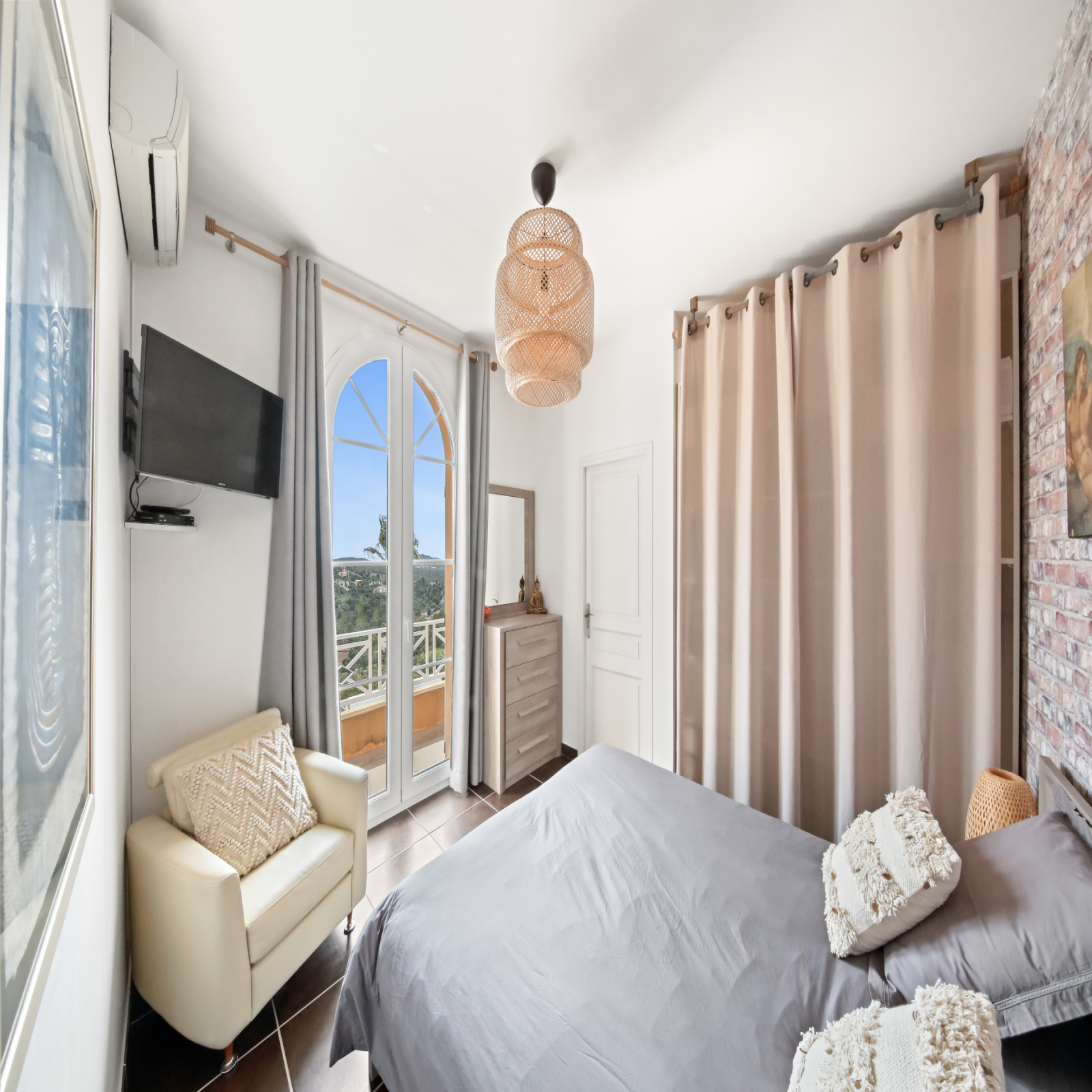 Dès votre arrivée, le charme opère : un jardin méditerranéen paysagé, une architecture élégante, un accès facile, et surtout une vue à couper le souffle sur la mer et les îles, visible dès les premières pièces à vivre.