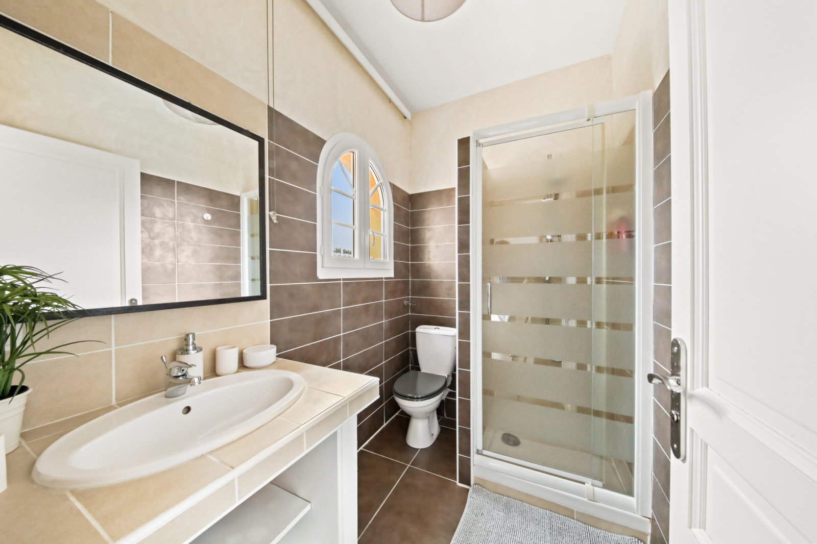 À l’intérieur, vous serez séduit par les volumes généreux et la lumière omniprésente, la villa comprend en rez de jardin : Un vaste séjour baigné de soleil, dominant la salle à manger, Une cuisine moderne ouverte sur une grande salle climatisée véritable pièce de vie, largement ouverte sur la terrasse et la piscine. Une suite parentale avec salle de bain, dressing et toilettes indépendants