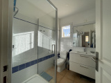 Construite sur un terrain peu pentu entièrement aménagé et paysagé, la villa est composée à l'étage : d'une entrée, de deux chambres dont une très spacieuse et une salle d'eau avec un WC.