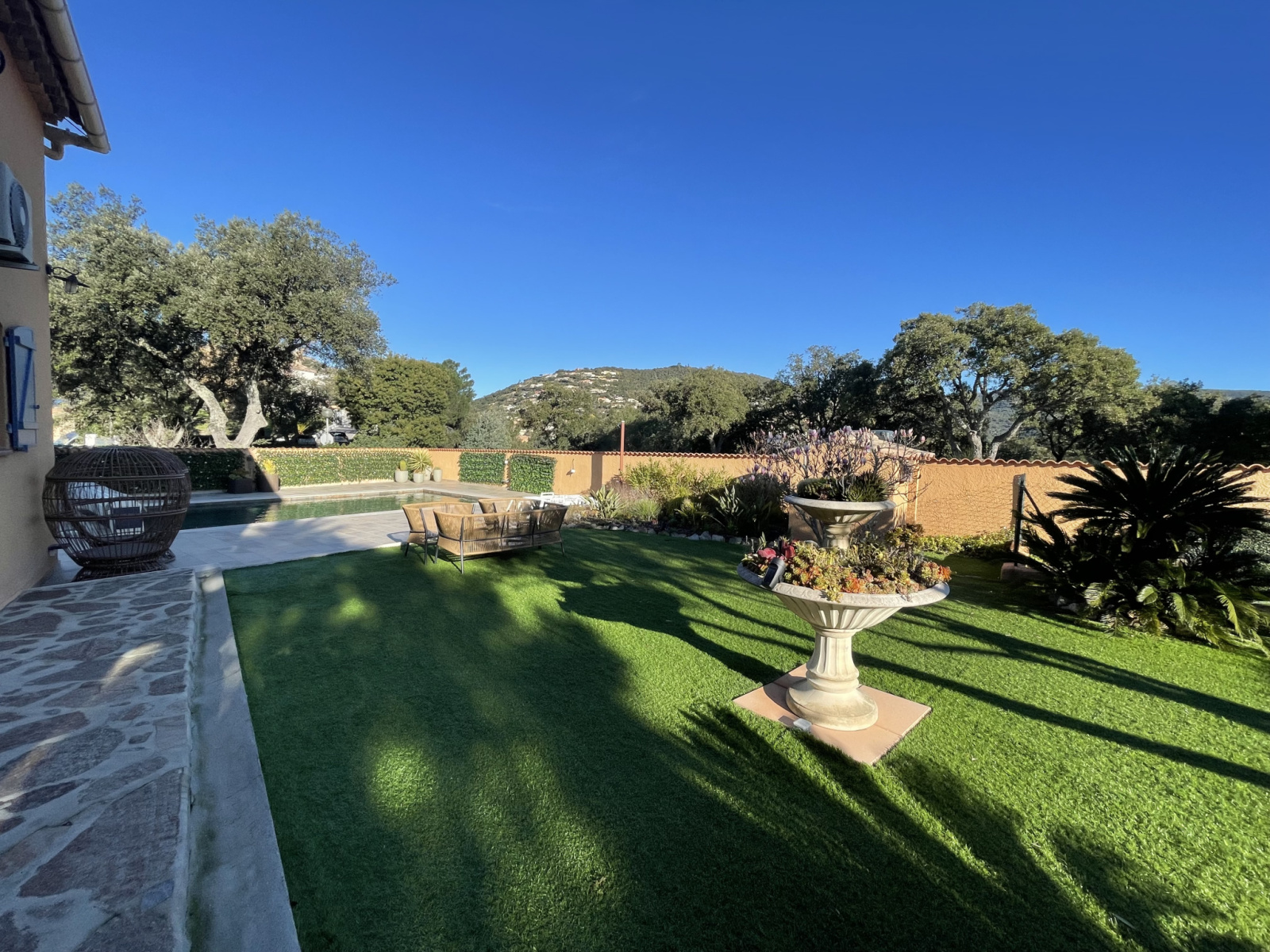 À l’extérieur, la maison prolonge son art de vivre. Une terrasse couverte, orientée plein sud, offrant une vue apaisante sur le lac. cachée sur l'arrière une piscine traditionnelle s’intègre harmonieusement dans le jardin, entourée de terrasses propices à la détente, autant qu’un espace de pelouse i
